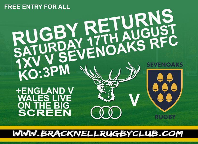 Prior to kick off we will also be showing the RWC warm up game from Cardiff on the clubhouse screens, kick off is 2.15pm so get down early before cheering on Bracknell.